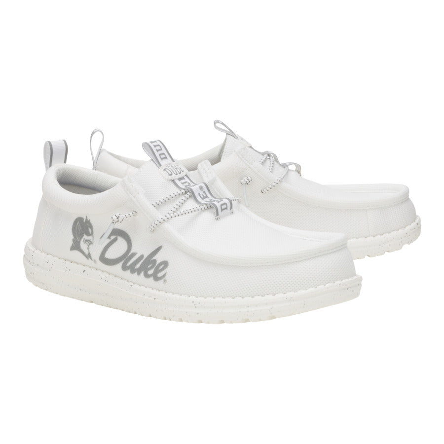 Our new unisex Wally Duke Blue Devils White has tackled the problem of going with EVERYTHING in your closet. We know you love their colors but wearing your team pride with anything is a huge win. Reflective. white-out style for major game day versatility. It’s like a blank campus for your outfit. Did we say campus We meant canvas Freudian slip.