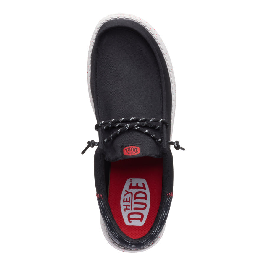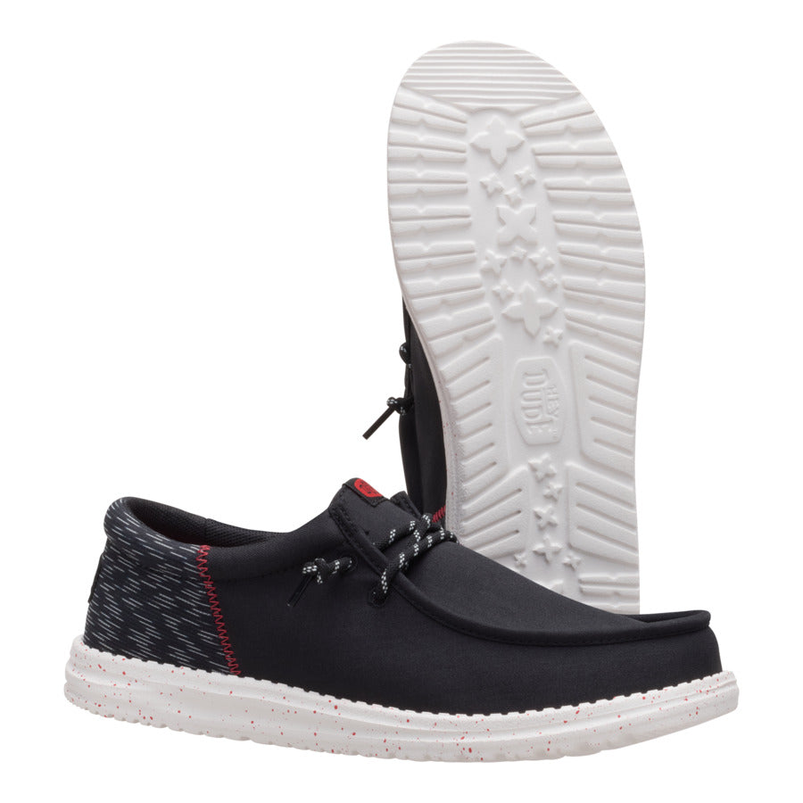 A little bit sophisticated. a whole lotta comfortable. These Wally Funk shoes have a jersey jacquard twill upper with some extra-special texture. Stretch laces and the HEYDUDE easy-on system make entry a breeze and the fit snug. The lightweight. flexible sole feels like floating. with some speckled detail just because.